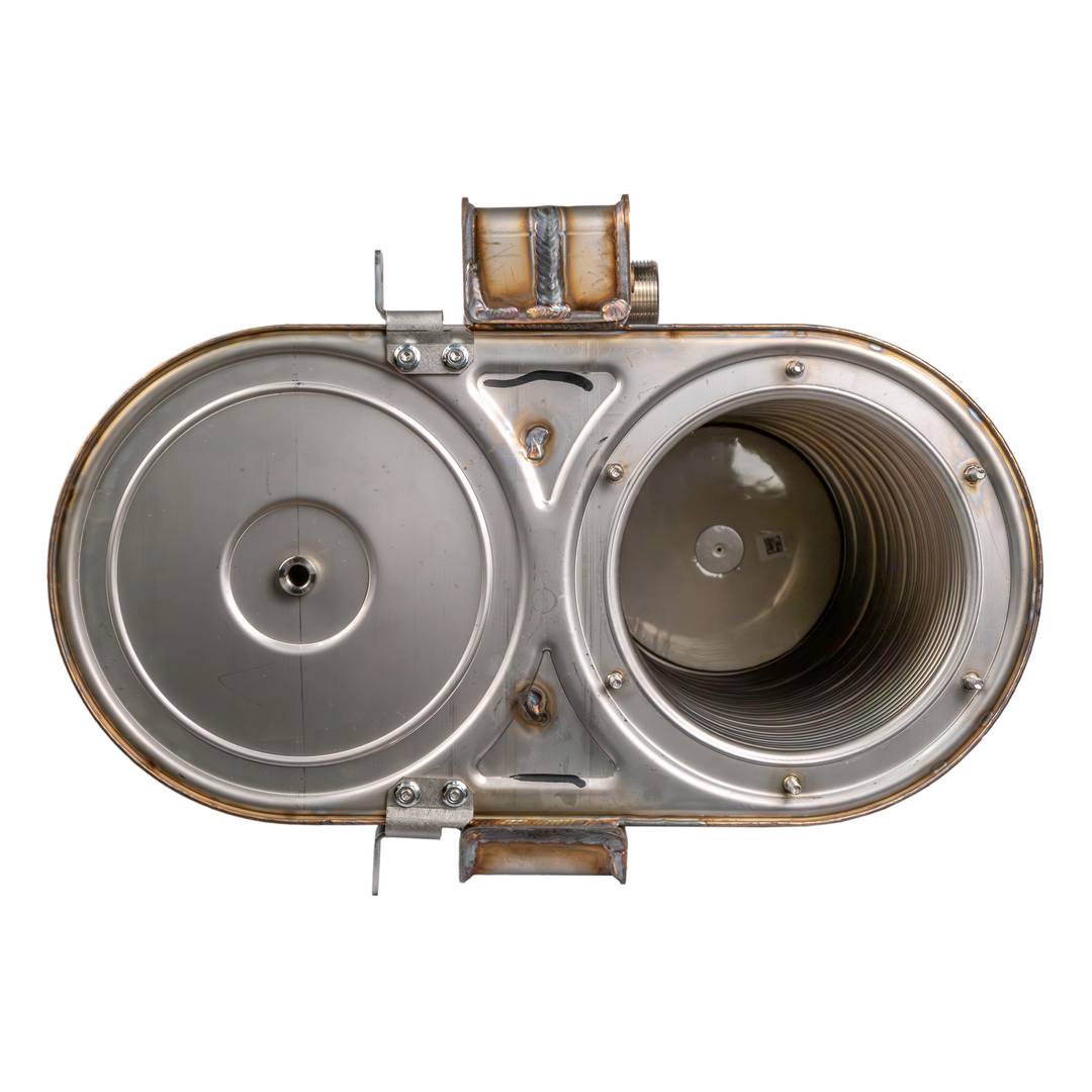 Передает тепловую энергию сжигаемой в камере сгорания газовоздушной смеси теплоносителю посредством теплопроводности. Альтернативное название - монотермический теплообменник.